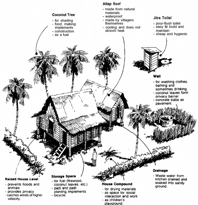 The static was enough to power certain devices within the house while a pair of propellers helped to steer the house. Though all rumah panjang came with an anchor if the owners felt like they wanted to stay in one place. There were also some railings around the side of the house that acted as decoration for the porch and fishing nets that could be used to catch fish in case of emergencies.